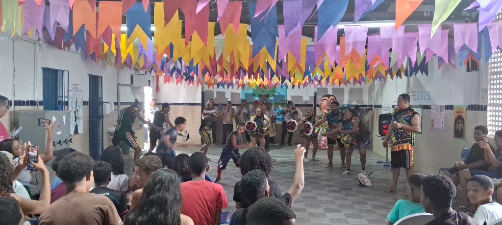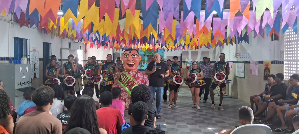 Clube de Boneco Seu Malaquias, programa Escola Aberta de Pernambuco, escola Gabriela Mistral. Participação do Maestro Mendes e Sua Orquestra, passistas de frevo Equipe Mateus Ramos, e o bonequeiro Anderson.